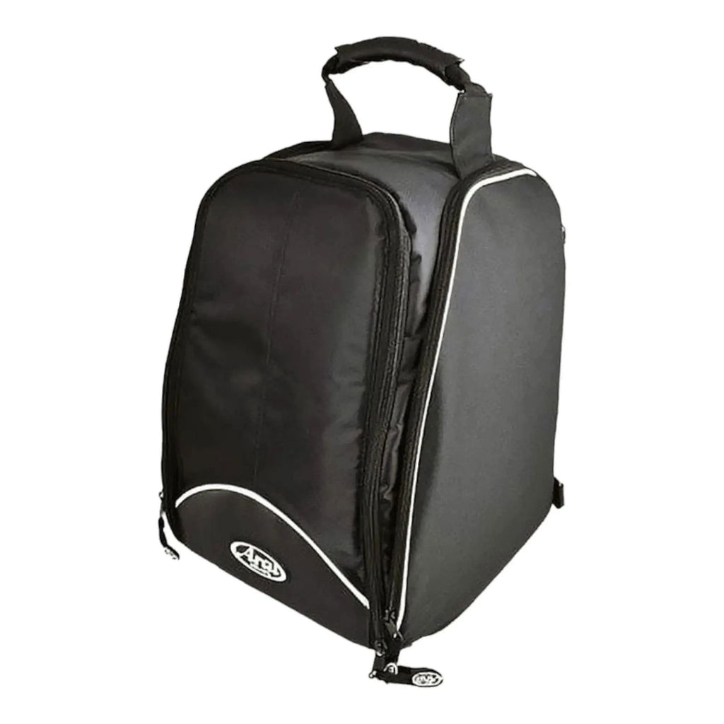 Die Arai Helmtasche verfügt über ein stark gepolstertes Innenleben, das so groß ist, dass es in nahezu jeden Rennhelm passt, sogar in solche mit Spoilern oder Luftansaugsystemen. Das attraktive Design umfasst versteckte Rucksackgurte neben dem großen Haltegriff für einfachen Transport. Zubehörtaschen an der Seite eignen sich perfekt zum Transportieren kleiner Accessoires, während die mitgelieferte Doppelschildtasche Ihre zusätzlichen Visiere vor Kratzern schützt.