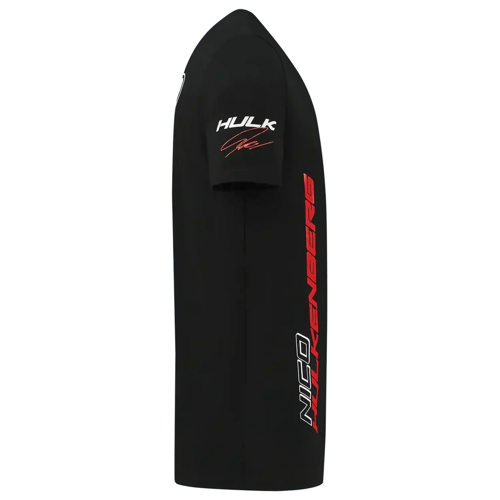 Avis à tous les fans de Hulk ! Vous pouvez afficher votre soutien à Nico sur et en dehors de la piste avec notre T-shirt Hulkenberg 2023. Également disponible en blanc.
