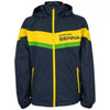 The design of the Windbreaker is based on Ayrton Senna's helmet design from his active formula 1™ time. The lettering Ayrton Senna is embroidered on the chest and the signature is placed on the shoulder. The removable hood can be stowed away in the collar and rounds off the sporty-functional design of this jacket.