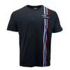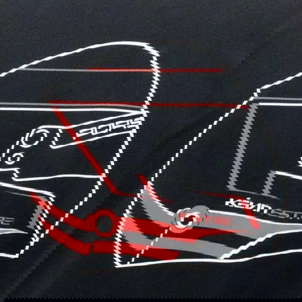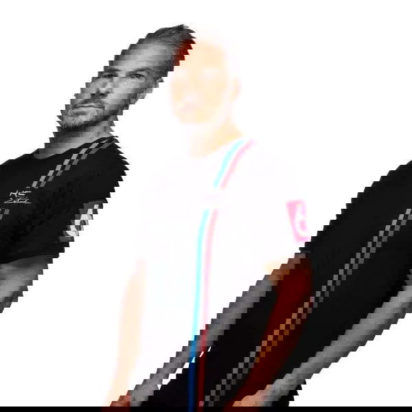 The T-shirt "6" in black from the Kévin Estre 2023 collection is made of high-quality cotton. In addition to the Kévin Estre signature and initials logo on the front and back, his helmet is shown on the back. The design is rounded off by the stripe print in red and blue on the front and his 24h Le Mans start number 6 from the Porsche Penske Motorsport Team on the sleeve. The crew neck shirt is made in a regular fit.