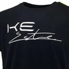 The "Grello" T-shirt in black from the Kévin Estre 2023 collection is made of high-quality cotton. In addition to the Kévin Estre signature and initials logo on the front and back, his helmet is depicted on the back. The design is rounded off by the polyester stripes in yellow on the shoulder. The crew neck shirt is made in a regular fit.