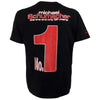 Michael Schumacher T-Shirt with motive print in black. Front and back have a large motif print. Front with Michael Schumacher and the slogan "the one and only GP champ". The back shows the same slogan with a big No. 1.