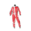 Waterproof kart oversuit made in ultrathin (0.15 mm), lightweight and resistant transparent material. Heat welded taped seams, waterproof central zipper with inner V shaped gusset to protect against heavy rain. Comfortable strech band on waist and elastic bellows on wrist to get the best comfort. Adjustable ankle closure with zipper and velcro allows you to fit quickly the suit. High resistance nylon protection on right elbow to protect against engine's heat.